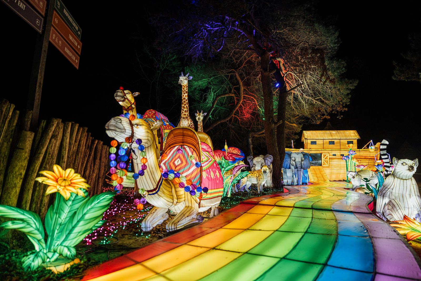 Tijdens Light Safari ontdek je het Safaripark op een unieke manier: volledig in het donker, maar verlicht door duizenden lampjes en metershoge lichtsculpturen van wilde dieren. Volg de speciale route langs lichtprojecties, kleurrijke themawerelden en interactieve elementen.